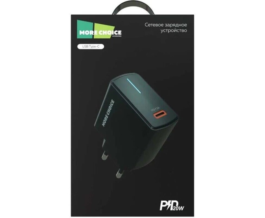 СЗУ MORE CHOICE (4610196409936) NC60 1USB-C 3.0A PD 20W быстрая зарядка Black