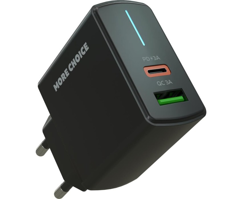 СЗУ MORE CHOICE (4610196409943) NC61 СЗУ 1USB+1USB-C 3.0A PD 20W+QC3.0 быстрая зарядка Black