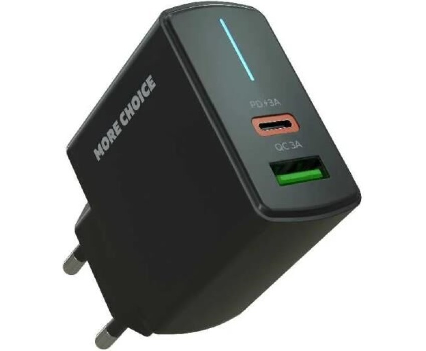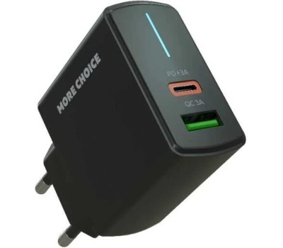 СЗУ MORE CHOICE (4620202551245) NC61a Black - 1USB+1USB-C 3.0A PD 20W+QC3.0 быстрая зарядка для Type-C