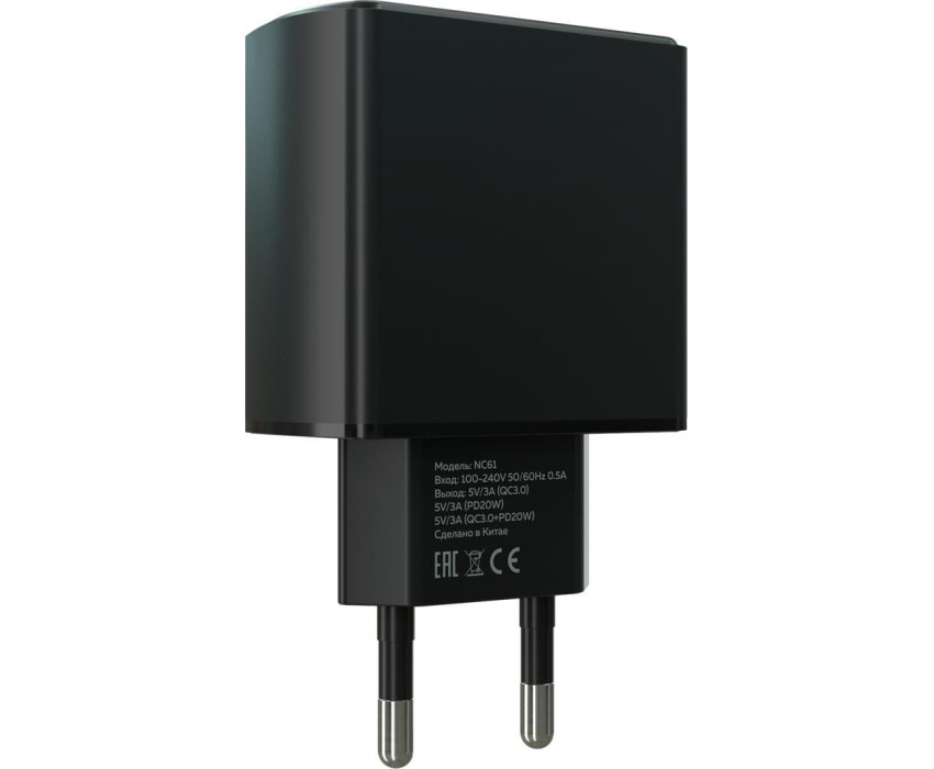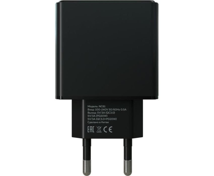 More choice NC61a это универсальное сетевое зарядное устройство с двумя портами USB и Type-C, который станет незаменимым помощником для зарядки ваших гаджетов. Адаптер поддерживает ускоренную зарядку по протоколу Q.C 3.0 и PD 20W, обеспечивая быструю и безопасную зарядку одновременно двух устройств. Зарядное устройство легко можно взять с собой на работу или в путешествие: компактный и практичный он быстро восполнит уровень заряда ваших мобильных устройств. Приспособление позволяет заряжать два устройства одновременно, это особенно полезно для тех, кто имеет несколько гаджетов и хочет экономить не только время, но и пространство. Обладает встроенной системой защиты от перегрузок и короткого замыкания. Вес адаптера 33 г. Кабель в комплекте имеет разъемы Type-C Type-C. Длина кабеля 1 метр.