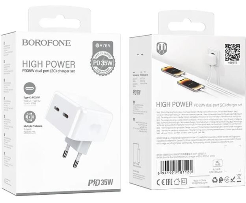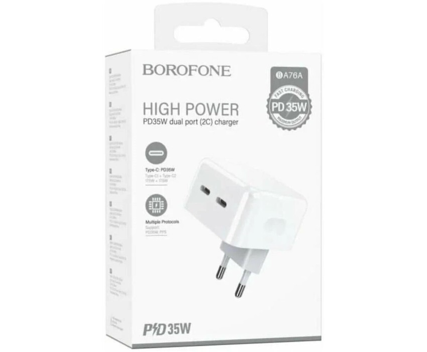 СЗУ BOROFONE (6941991101113) BA76A 2Type-C 3.0A PD 35W , White