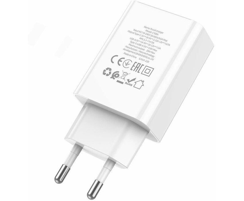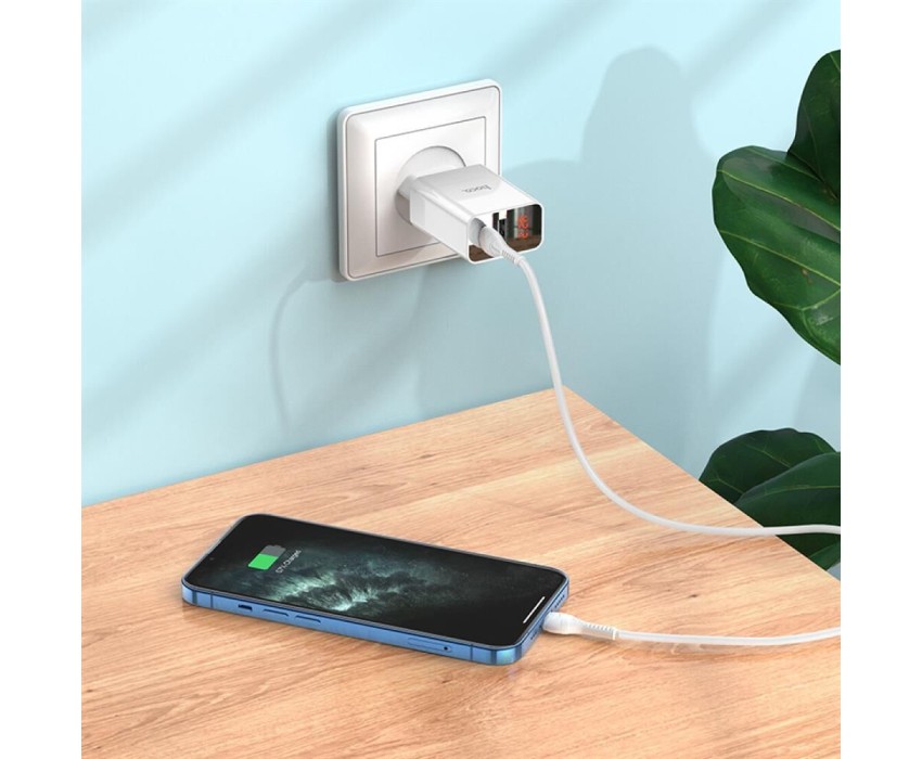 СЗУ HOCO (6931474769824) C100Aaa 1USB+1Type-C 3.0A QC3.0 PD 20W , White