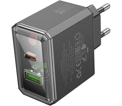 СЗУ BOROFONE (6941991110641) 1USB+1Type-C 3.0A QC3.0 PD 30W Black
