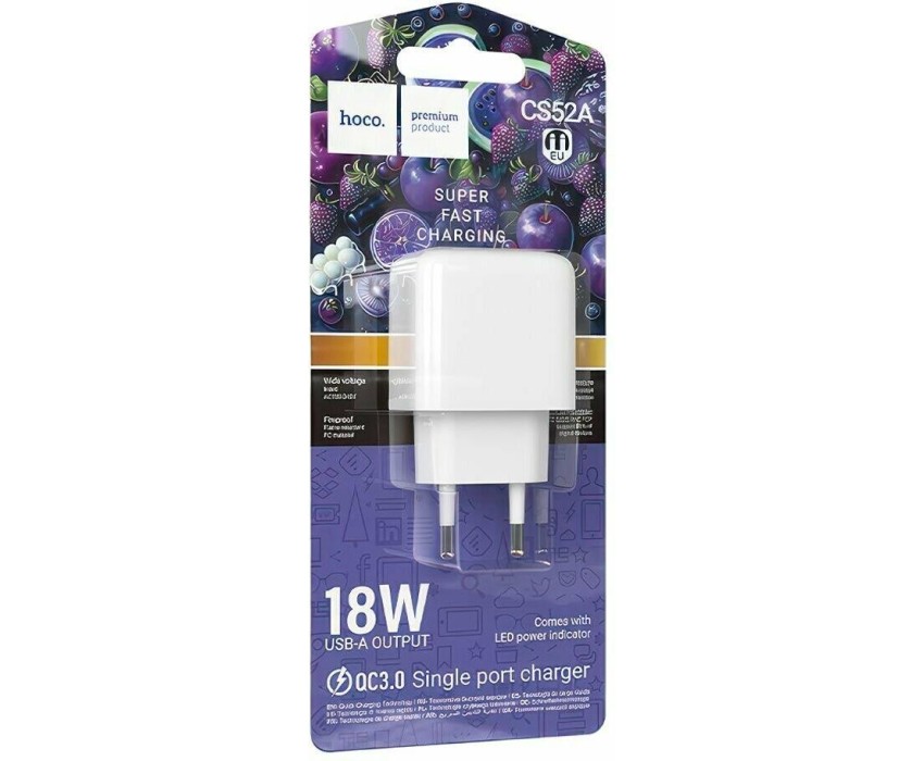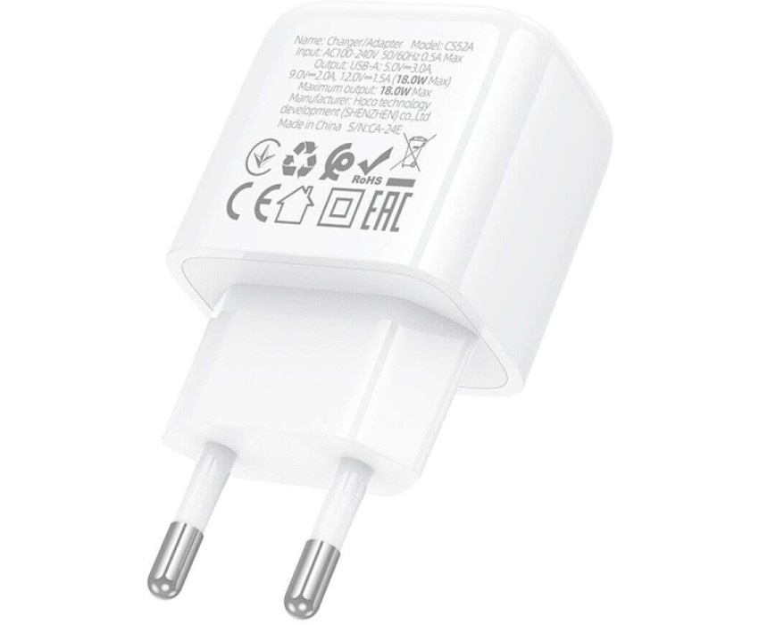 СЗУ HOCO (6942007631457) CS52A 1USB 3.0A QC3.0 18W White