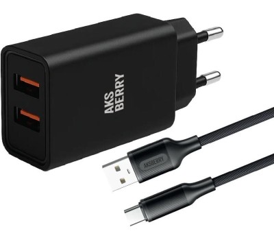 СЗУ AKSBERRY (6900209230014) T38 2 USB 2.4A + кабель Type C, черный