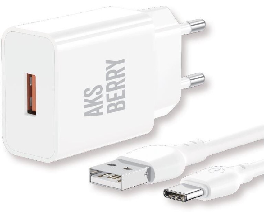 СЗУ AKSBERRY (6972969383088) T42 QC3.0 + кабель Type C (белый)