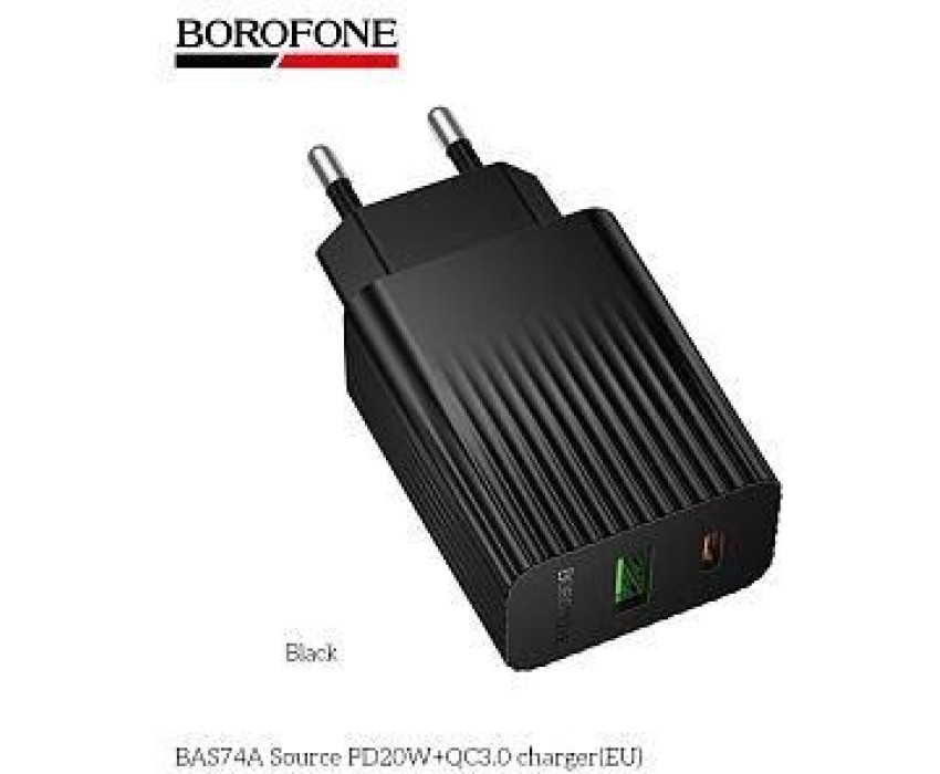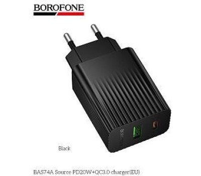 СЗУ BOROFONE (6941991122750) BAS74A 1USB+1Type-C 3.0A QC3.0 PD 20W Black
