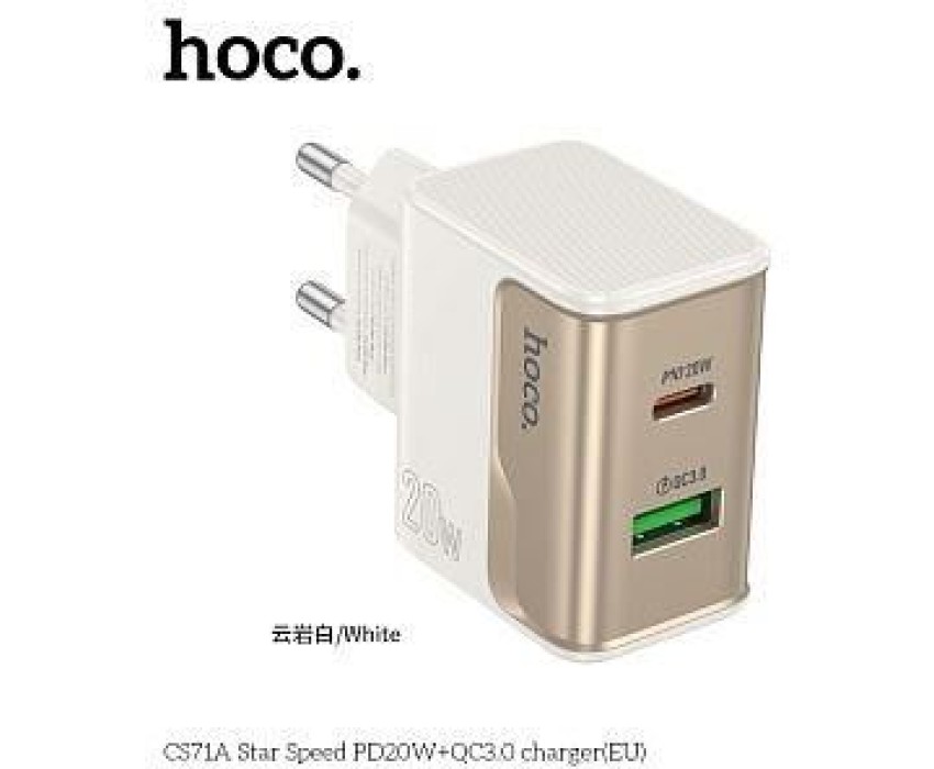 СЗУ HOCO (6942007653671) CS71A 1USB+1Type-C 3.0A PD20W+QC3.0 White