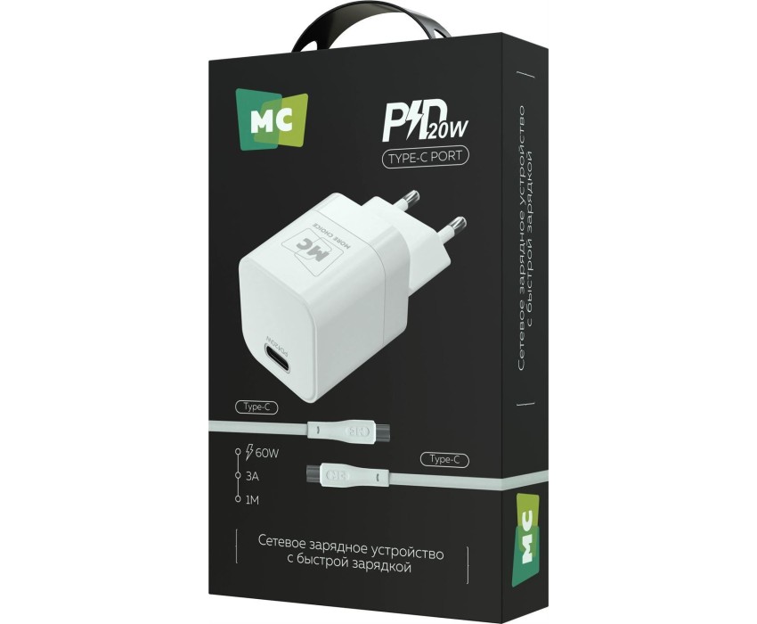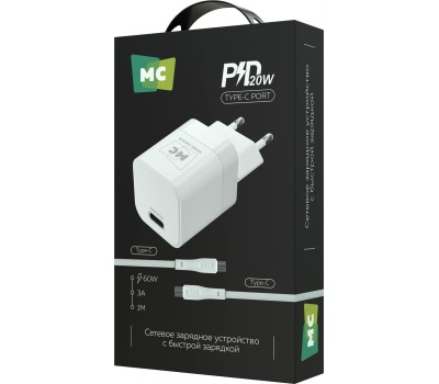 СЗУ MORE CHOICE (4620202555854) NC86a 1Type-C 3.0A PD 20W для Type-C Type-C White