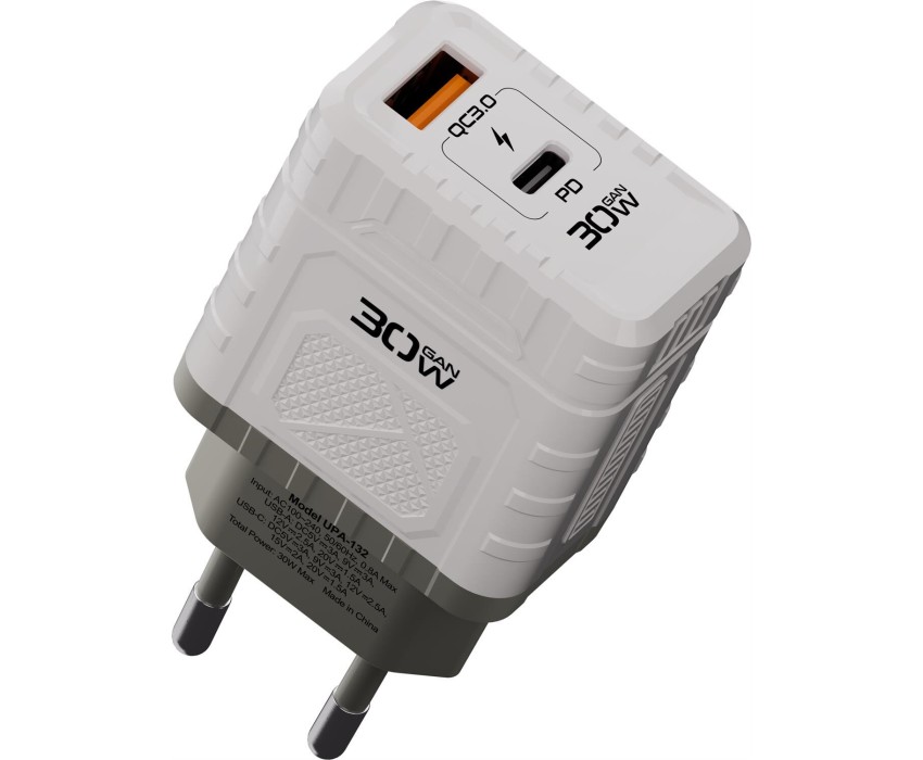 Современное зарядное устройство нового поколения с поддержкой быстрой зарядки через USB-C и USB-A. Основанное на GaN-технологии, оно компактнее и эффективнее стандартных адаптеров. Выдаёт до 30 Вт мощности, обеспечивая быструю зарядку смартфонов, планшетов и даже компактных ноутбуков. Два порта позволяют заряжать два устройства одновременно, а широкий диапазон выходного напряжения (до 20 В) делает его универсальным решением для большинства гаджетов. Работает от сети 100–240 В, идеально подходит для дома, офиса и путешествий.