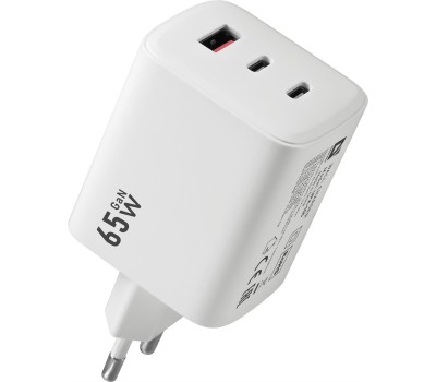 Мощное и компактное зарядное устройство на 65 Вт с технологией GaN — быстро заряжает и не перегревается. Оснащено двумя портами USB-C и одним USB-A, подходит для смартфонов, планшетов, ноутбуков и других устройств. При подключении одного устройства выдаёт до 65 Вт, а при одновременной зарядке — распределяет мощность без потери скорости. Поддерживает большинство стандартов быстрой зарядки. Удобно брать с собой в дорогу — лёгкое и универсальное.