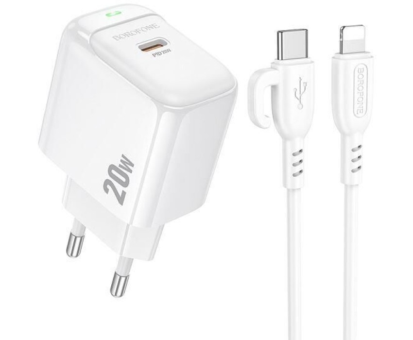 Сетевое зарядное устройство Borofone – это компактное и стильное решение для быстрой и безопасной зарядки ваших устройств. Изготовлено из прочного ABS-пластика, который обеспечивает надежность и долговечность аксессуара. Оборудовано портом Type-C с выходной мощностью до 20 Вт и поддержкой популярных протоколов быстрой зарядки: PD, QC, FCP и AFC. Такое устройство идеально подходит для зарядки смартфонов, планшетов и других гаджетов, требующих быстрой подачи энергии. В комплекте идет кабель длиной 1 метр Type-C на Lightning, что делает набор особенно удобным для пользователей техники Apple