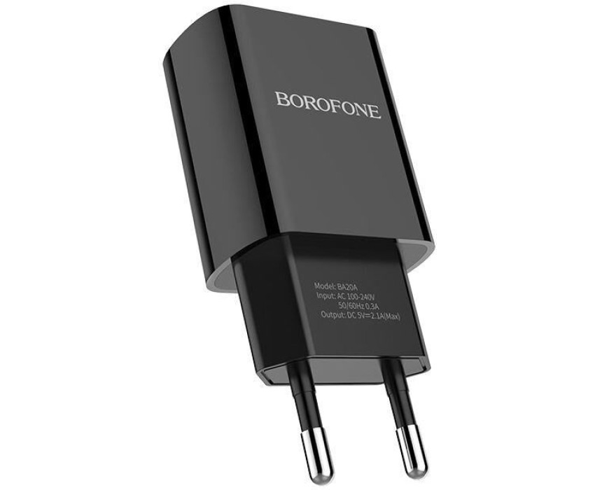 Сетевое зарядное устройство Borofone BA20A обладает стабильным показателем мощности, что обеспечивает быструю зарядку устройства и сводит к минимуму возможные повреждения. Значение силы тока на выходе usb 2,1 A. Детали корпуса выполнены из пластика высокого качества. Порт зарядки надежно зафиксирован в гнезде устройства, рассчитан на длительную производительность, совместим с любым кабелем и позволяет заряжать любое мобильное устройство.