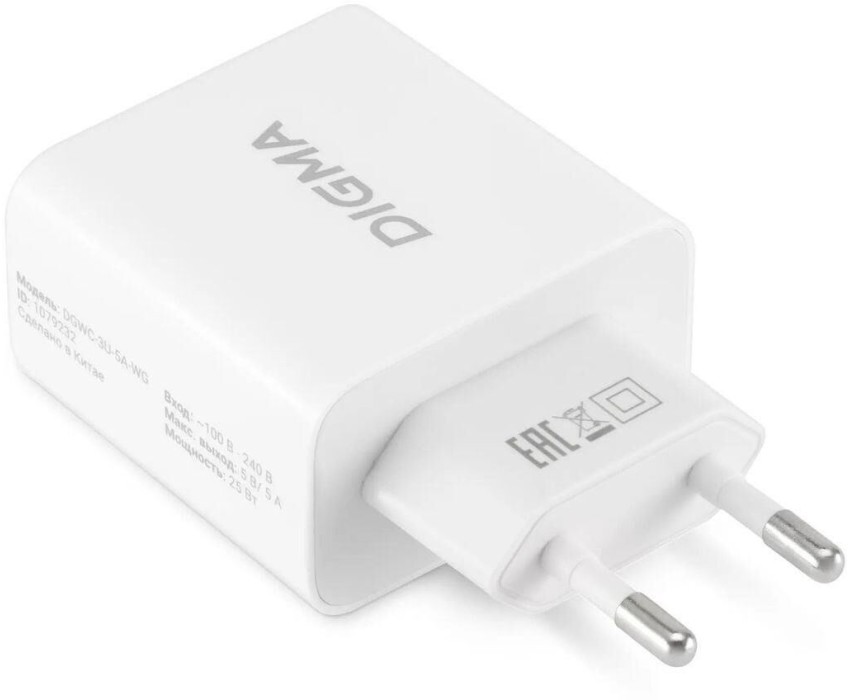 СЗУ DIGMA Сетевое зар./устр. DGWC-3U-5A-WG 30W 3A (PD+QC) 3xUSB универсальное белый