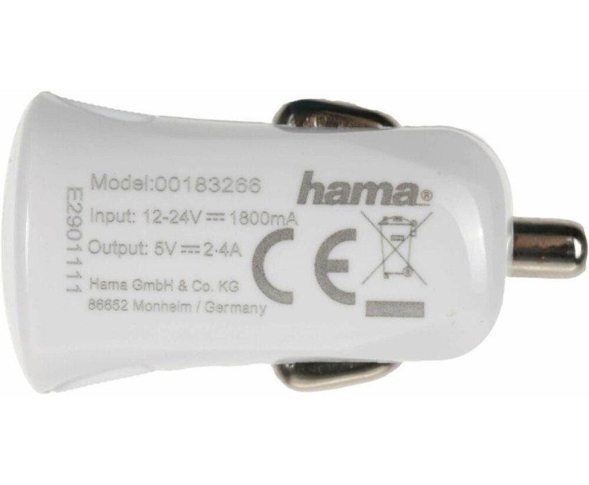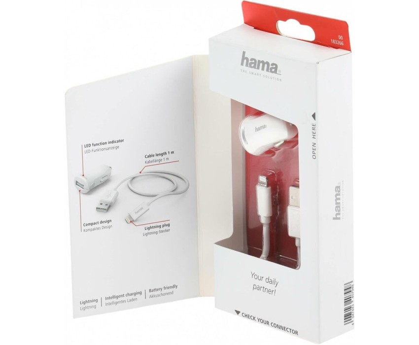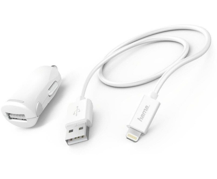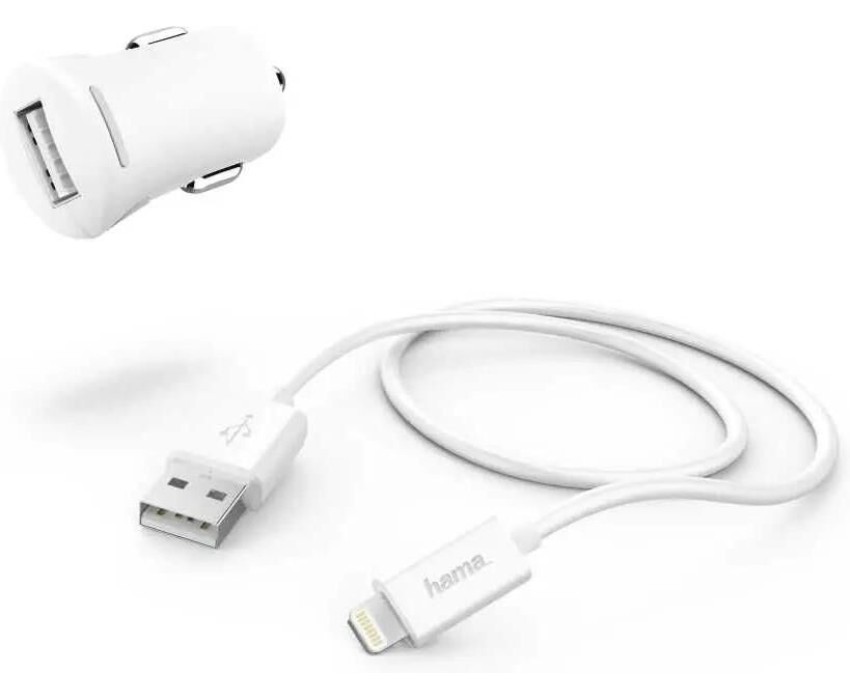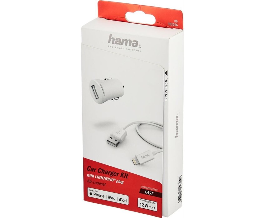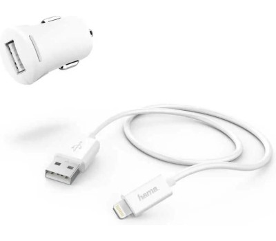 HAMA Автомобильное зарядное устройство H-183266, USB-A, 8-pin Lightning, 12Вт, 2.4A, белый [00183266]
