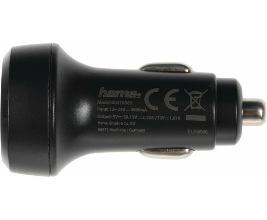 HAMA Автомобильное зарядное устройство H-210569, USB-A, 20Вт, 1.67A, черный [00210569]