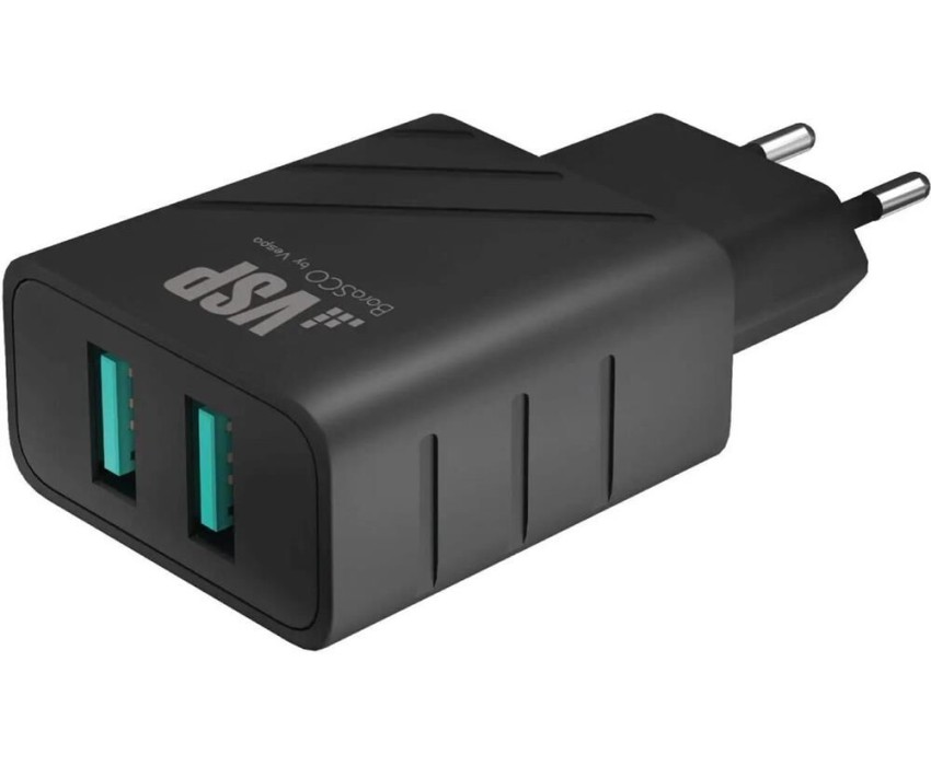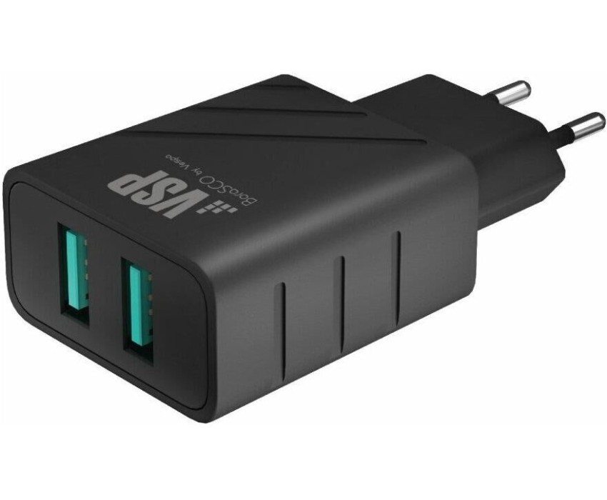 BORASCO Сетевое зарядное устройство 37262, 2xUSB-A, 2.4A, черный