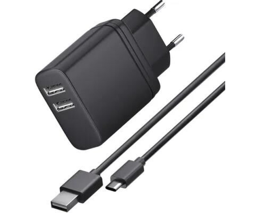 Вес товара: 80. Длина кабеля: 1. Назначение: универсальное. Тип питания: от бытовой сети. Кабель в комплекте: Кабель USB Type C. Совместимость для мобильных: универсальное. Совместимость для планшетов: универсальное. Совместимость для плеера: универсальное. Защита от перегрузки: есть. Защита от короткого замыкания: есть. Защита от перенапряжения: есть. Материал: пластик. Сила выходного тока: 3. Габариты упаковки (ед) ДхШхВ: 0.095x0.035x0.13. Вес упаковки (ед): 0.08. Страна производства: Китай. Выходная мощность: 15. Количество разъемов USB-A на блоке ЗУ: 2. Гарантия: 6 мес.. Входное напряжение: 110-240 В. Выходное напряжение: 5 В. Размеры (ШхВхГ): 43 х 84 х 28 мм. Цвет: черный. Разъем ЗУ на конце кабеля: USB-C. Мощность: 15 Вт. Разъем на блоке з/у: USB-A x 2. Особенности: data-кабель в комплекте. Питание: от бытовой сети. Разъем на конце кабеля: USB-C. Подходит для: универсальное. Сила выходного тока: 3 A. Цвет: черный. Подходит для: универсальное. Подходит для: универсальное
