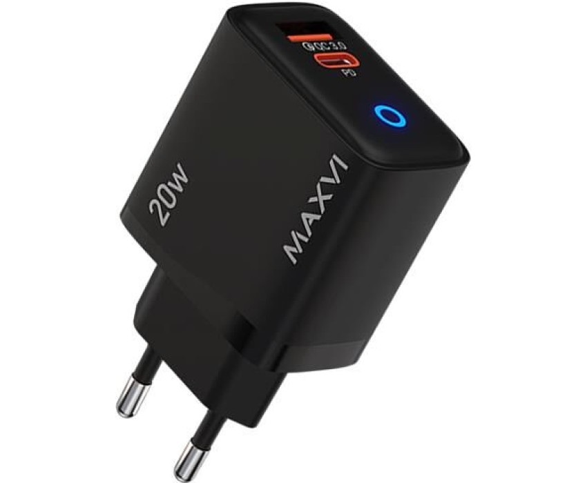 MAXVI СЗУ SFC-220PD 20W, USB-A, USB-C, black