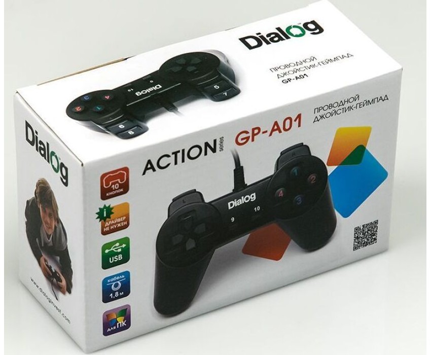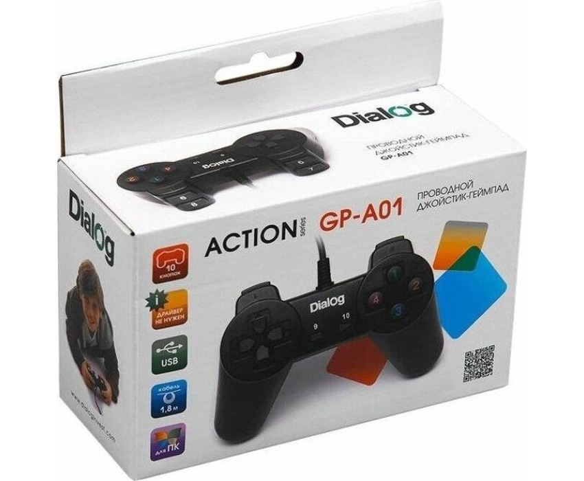 Геймпад GP-A01 Dialog Action - 10 кнопок, USB, черный
