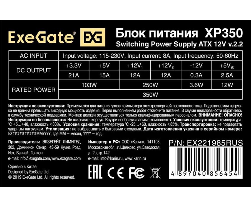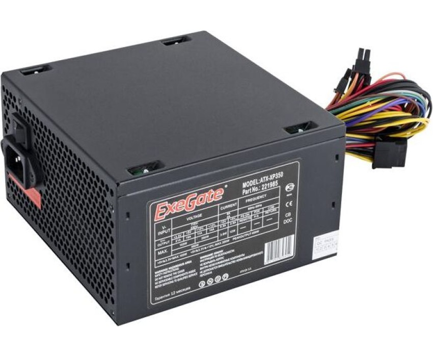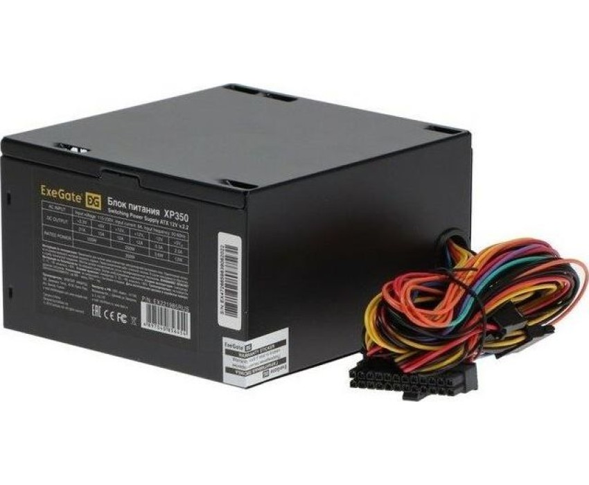 Блок питания EXEGATE 350W XP350, ATX, PC, black, 12cm fan, 24p+4p, 3*SATA, 2*IDE, FDD (EX221985RUS)