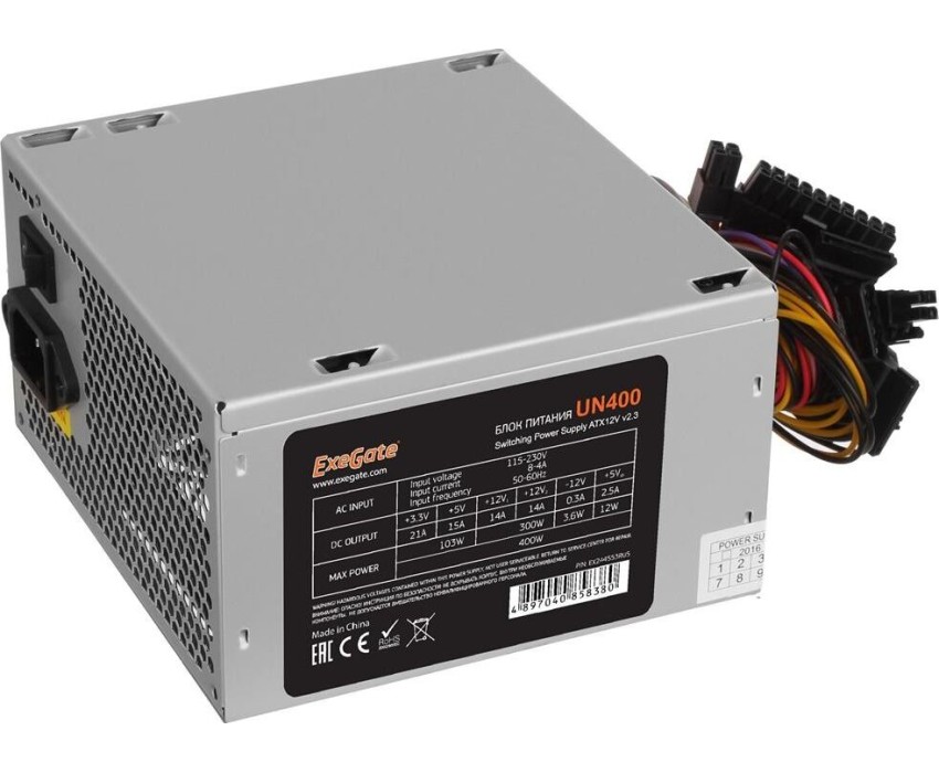 Блок питания EXEGATE 400W UN400, ATX, 12cm fan, 24p+4p, 3*SATA, 2*IDE, FDD (EX244553RUS)