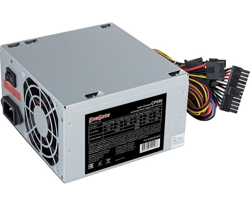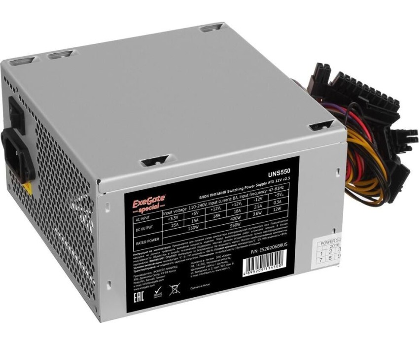 Блок питания Exegate ES282068RUS Блок питания 550W ExeGate Special UNS550, ATX, 12cm fan, 24p+4p, 6/8p PCI-E, 3*SATA, 2*IDE, FDD
