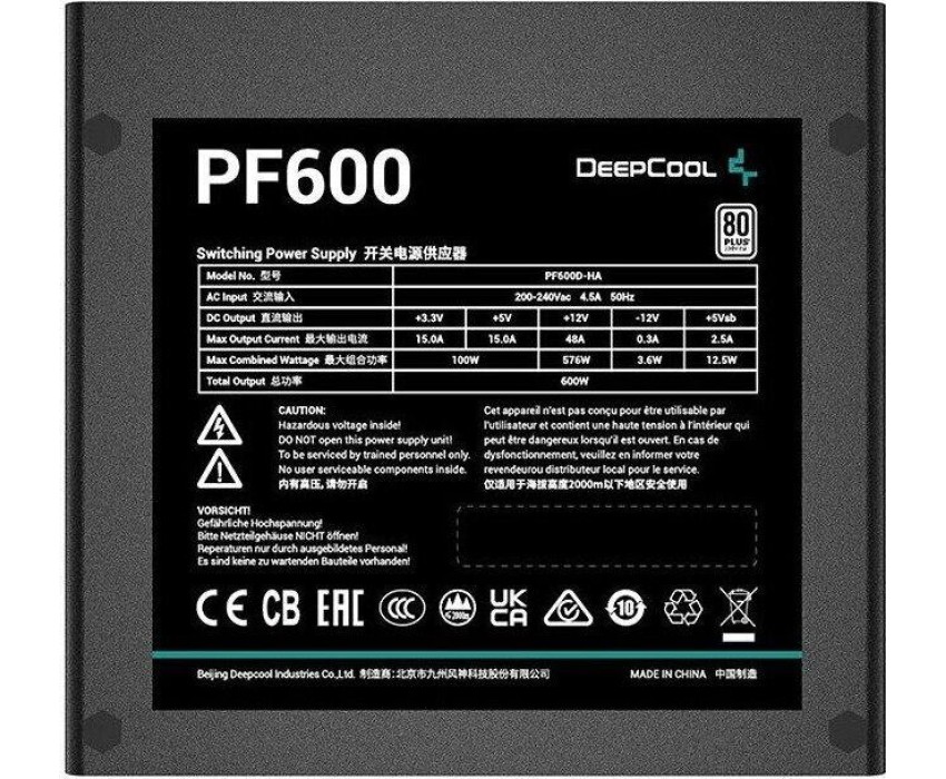 Блок питания DEEPCOOL Блок питания ATX 600W PF600 80 PLUS WHITE (20+4pin) APFC 120mm fan 6xSATA RTL