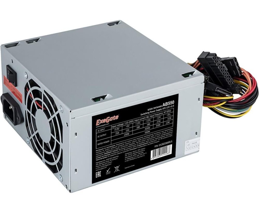 Блок питания EXEGATE EX282066RUS Блок питания 550W AB550, ATX, 8cm fan, 24p+4p, 3*SATA, 2*IDE, FDD