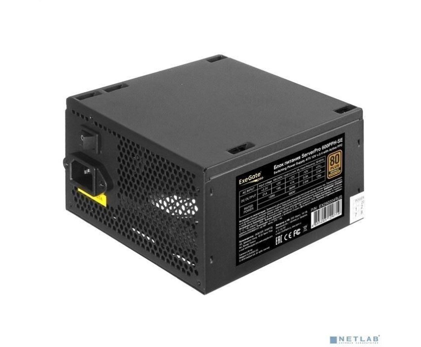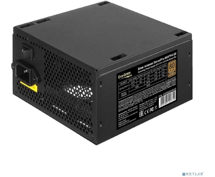 [Блок питания] Exegate EX292204RUS Серверный БП 600W ExeGate ServerPRO 80 PLUS® Bronze 600PPH-SE (ATX, for 3U+ cases, APFC, КПД 85% (80 PLUS Bronze), 12cm fan, 24p, (4+4)p, PCIe, 5SATA, 3IDE, black)