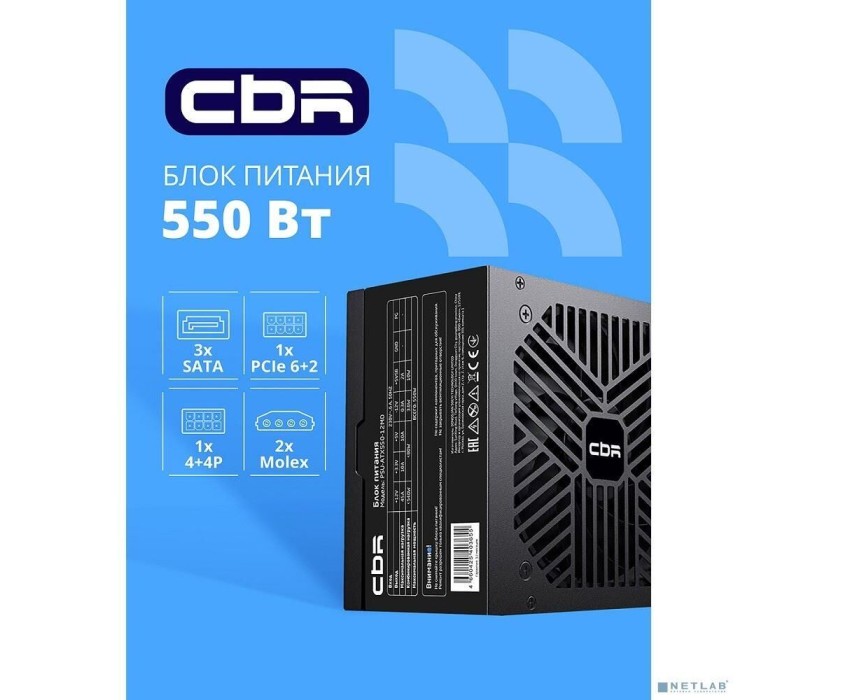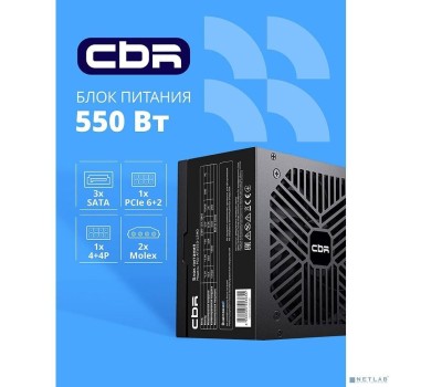 Блок питания CBR ATX 550W, 12cm fan, 24pin, 1*4+4pin, 1*6+2pin, 2*IDE, 3*SATA, кабель питания 1.2м, черный [PSU-ATX550-12MD] OEM