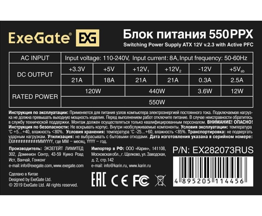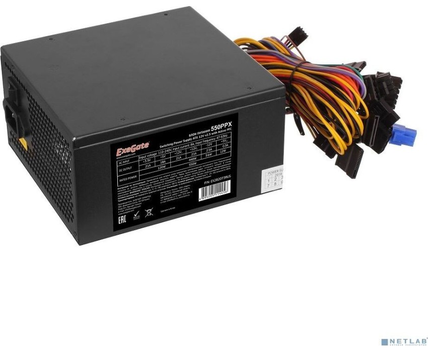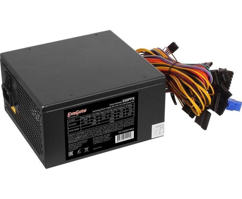 Блок питания Exegate EX282073RUS Блок питания 550W 550PPX RTL, ATX, black, APFC, 14cm, 24p+(4+4)p PCI-E,4*IDE,5*SATA, FDD