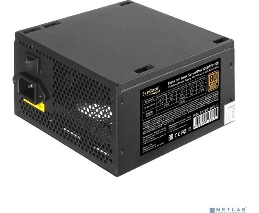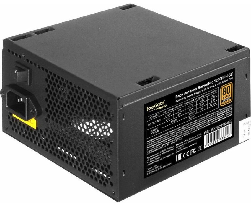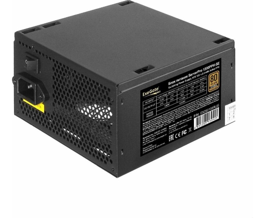 [Блок питания] Exegate EX292196RUS Серверный БП 1200W ExeGate ServerPRO 80 PLUS® Bronze 1200PPH-SE (ATX, for 3U+ cases, APFC, КПД 89% (80 PLUS Bronze), 12cm fan, 24pin, 2x(4+4)p, 6xPCI-E, 8xSATA, 4xIDE, box, black)