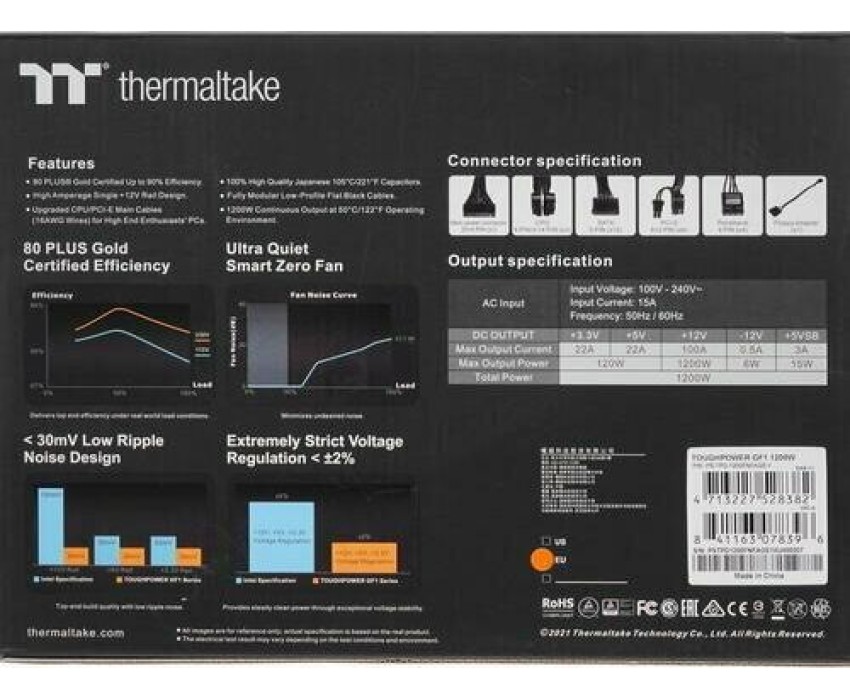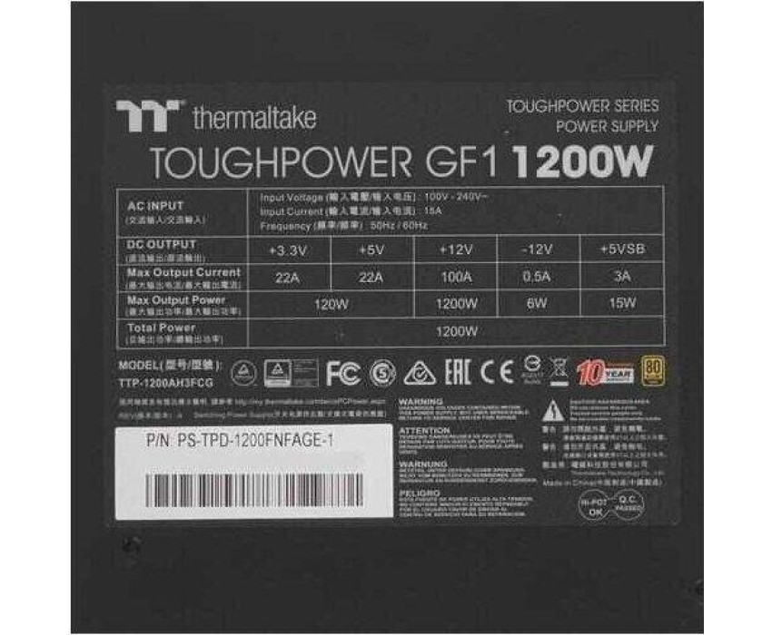 THERMALTAKE Блок питания Toughpower GF1, 1200Вт, 80 PLUS GOLD, 140мм, черный, retail [ps-tpd-1200fnfage-1]