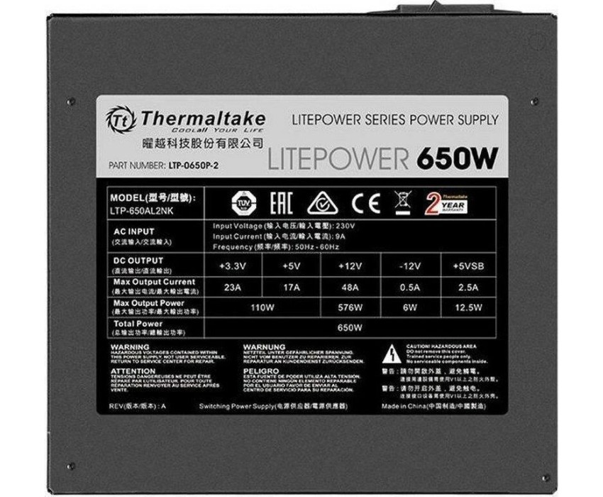 THERMALTAKE Блок питания Litepower, 650Вт, 120мм, черный, retail [ps-ltp-0650npcneu-2]