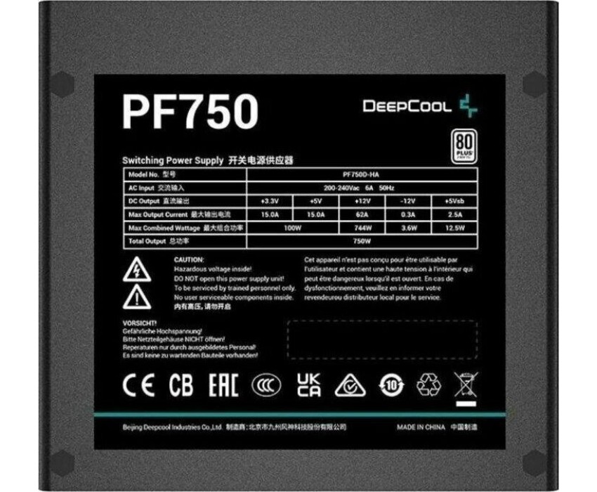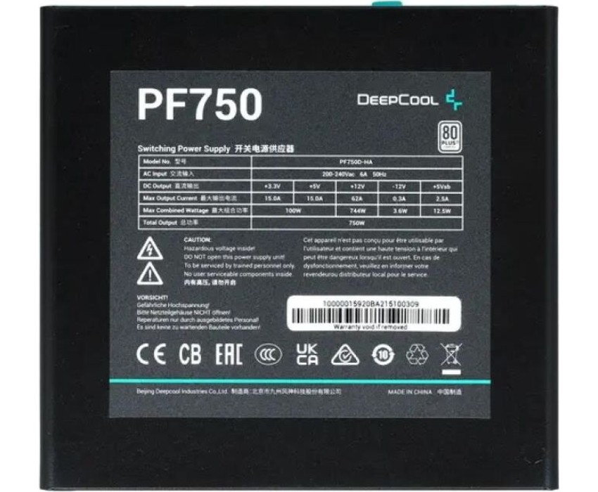 Общая информация Модель товараИнформацияБлоки питания DeepCool серии PF обеспечивают безопасное стабильное электропитание с подтверждённой эффективностью стандарта 80 PLUS. Блоки питания сертифицированы по стандарту 80 PLUS 230V EU, удостоверяющему эффективность 85% под типичной 50-процентной нагрузкой. Чем выше эффективность, тем меньше потери энергии, меньше рабочие температуры и лучше экономия средств.