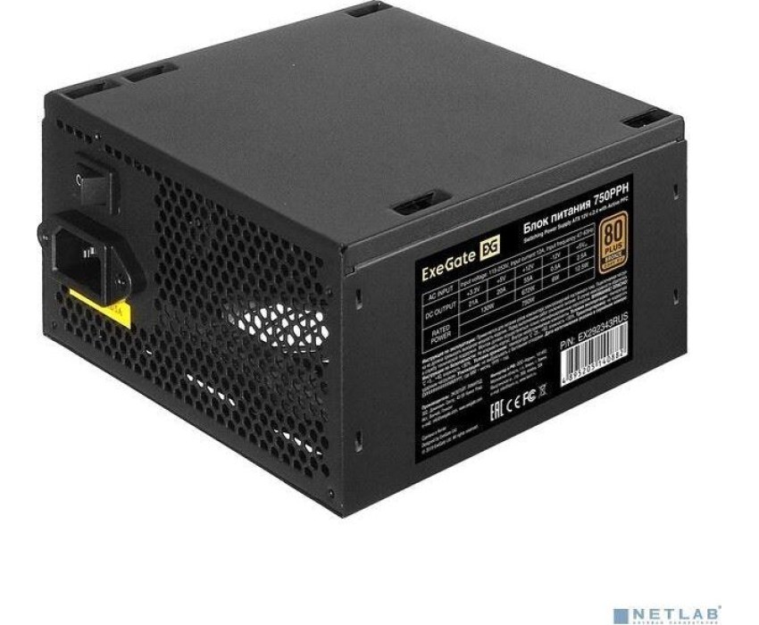 [Блок питания] Exegate EX292343RUS-OEM Блок питания 750W ExeGate 80 PLUS® Bronze 750PPH-OEM (ATX, APFC, КПД 89% (80 PLUS Bronze), 12cm fan, 24pin, 2x(4+4)pin, 4xPCI-E, 6xSATA, 3xIDE, black, RTL)
