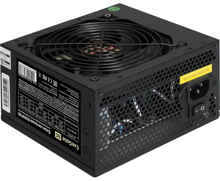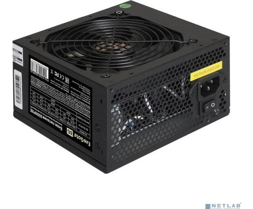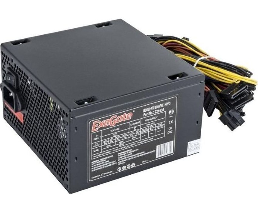 Exegate EX221639RUS-PC Блок питания 600W ExeGate 600NPXE (ATX, PPFC, PC, 12cm fan, 24pin, (4+4)pin, PCIe, 4xSATA, 3xIDE, black, кабель 220V в комплекте)