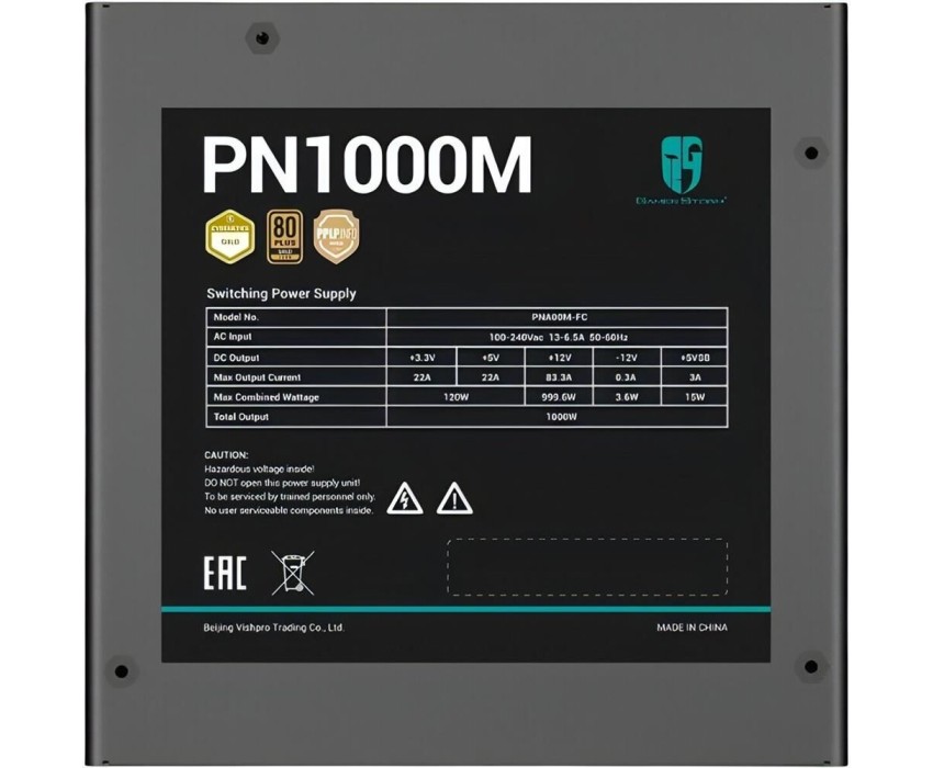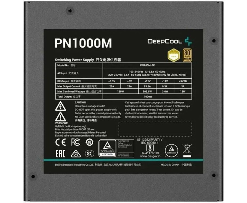 Блок питания DEEPCOOL Блок питания GamerStorm PN1000M Gen.5, 1000Вт, 80 PLUS GOLD, 135мм, черный, retail [r-pna00m-fc0b-wgeu]