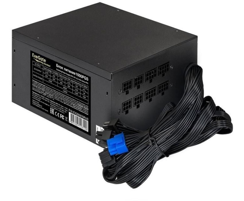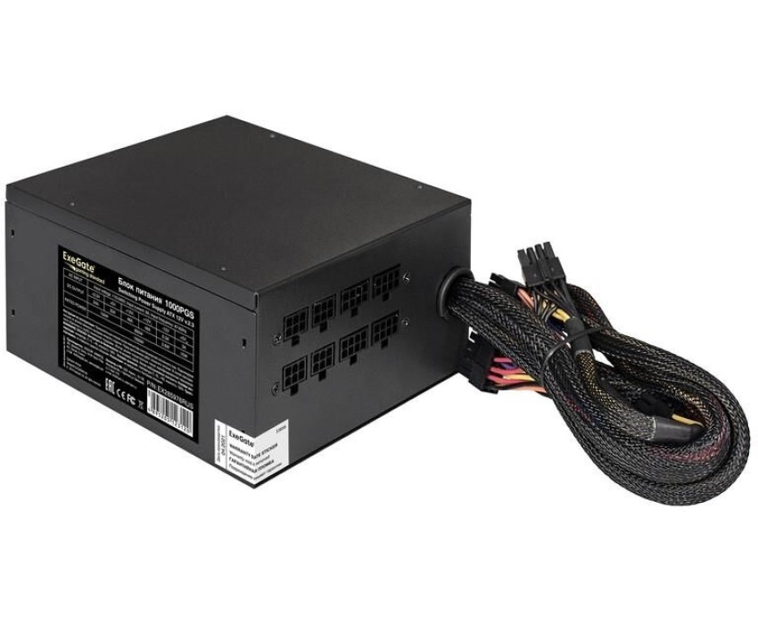 Блок питания Exegate 1000W Gaming Standard 1000PGS (ATX, APFC, КПД 82% (80 PLUS), 14cm fan, 24pin, 2x(4+4)pin, PCIe, 5xSATA, 4xIDE, Cable Management, black, RTL)