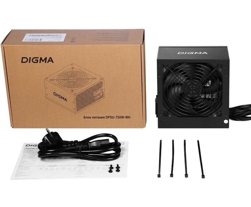 Блок питания DIGMA Блок питания DPSU-750W-WH, 750Вт, 80 PLUS WHITE, 120мм, черный, retail