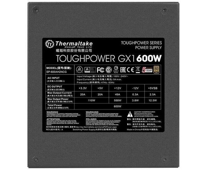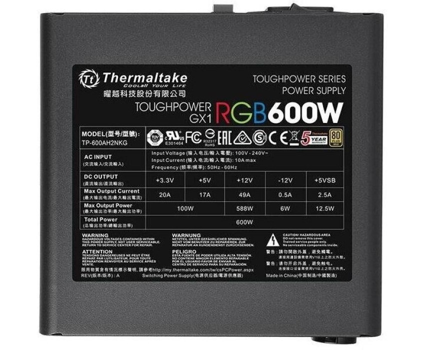 Блок питания THERMALTAKE Блок питания Toughpower GX1 RGB 600 PS-TPD-0600NHFAGE-1 600W, 80 Plus Gold
