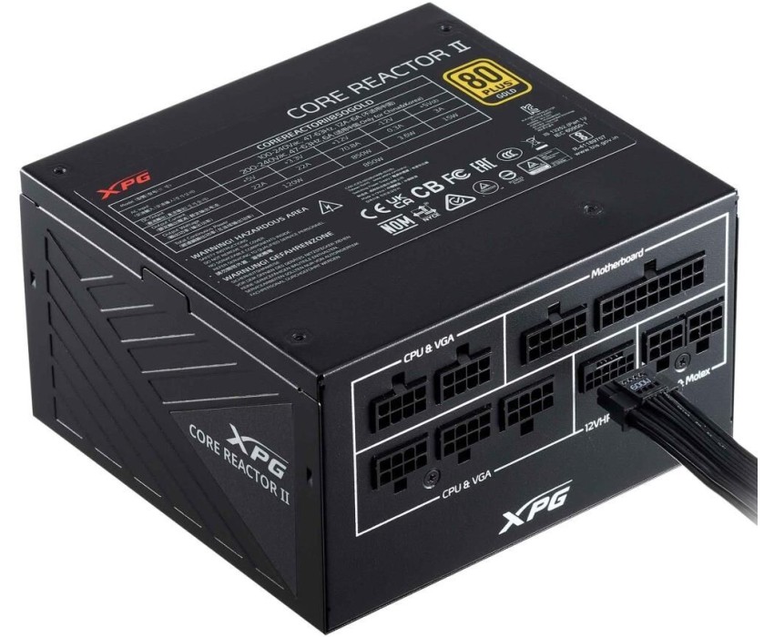 Блок питания ADATA XPG Core Reactor II 850 (COREREACTORII850G-BKCEU), 850Вт, 80 PLUS Gold, 120мм, модульный, черный