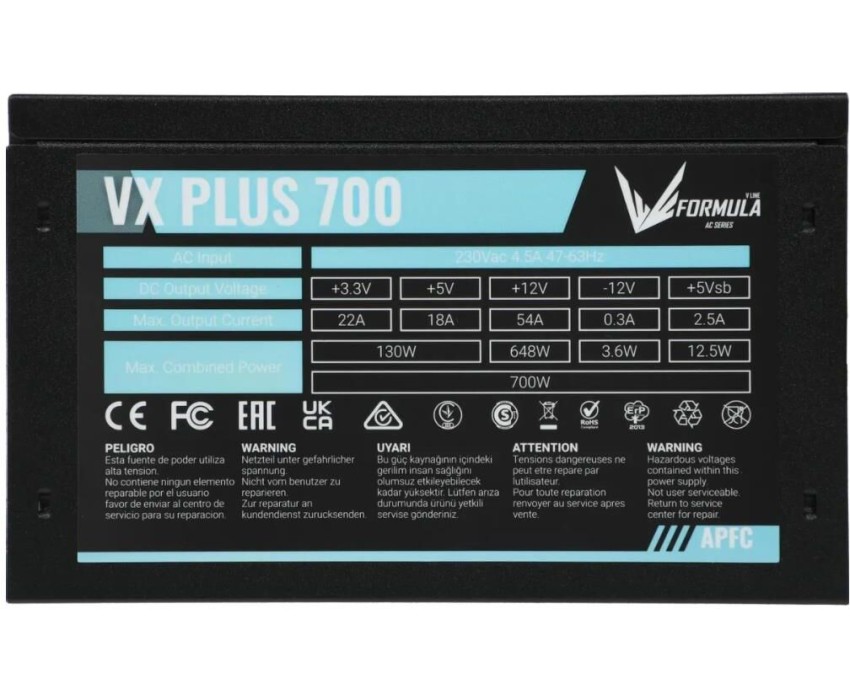 Блок питания Aerocool / Formula VX-700 PLUS, 700Вт, 120мм, черный, (аналог Aerocool VX Plus 700)