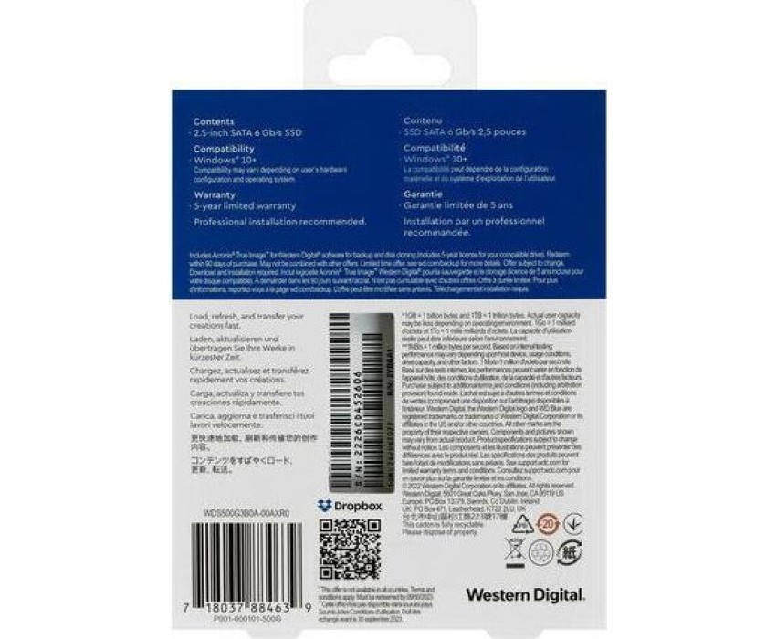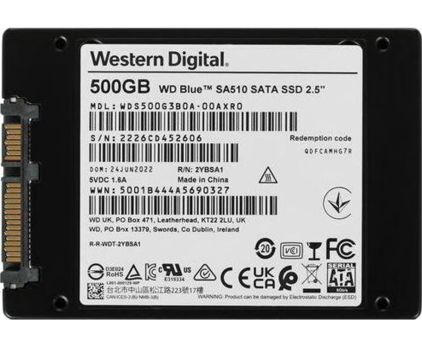 Накопитель SSD WESTERN DIGITAL Накопитель SSD SATA2.5" 500GB BLUE SA510 WDS500G3B0A WDC