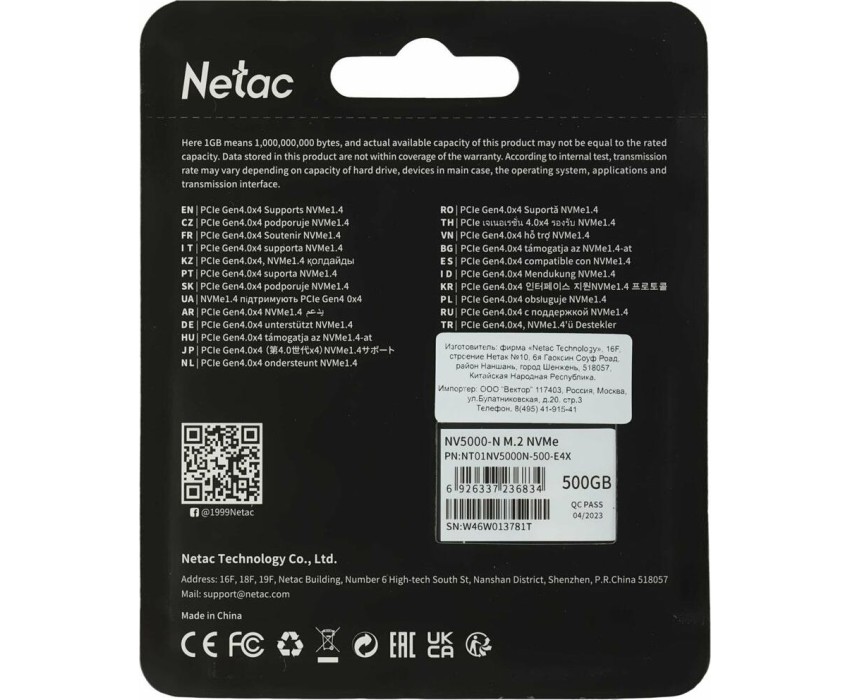 Накопитель SSD NETAC Накопитель SSD M.2 2280 NVME 500GB NT01NV5000N-500-E4X