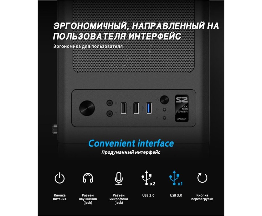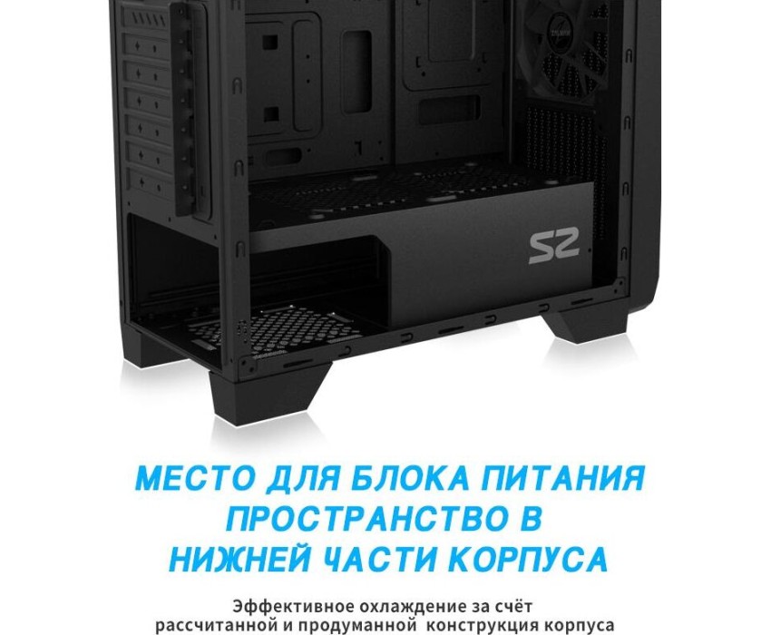 ZALMAN S5 Black, без БП, боковое окно (закаленное стекло), черный, ATX