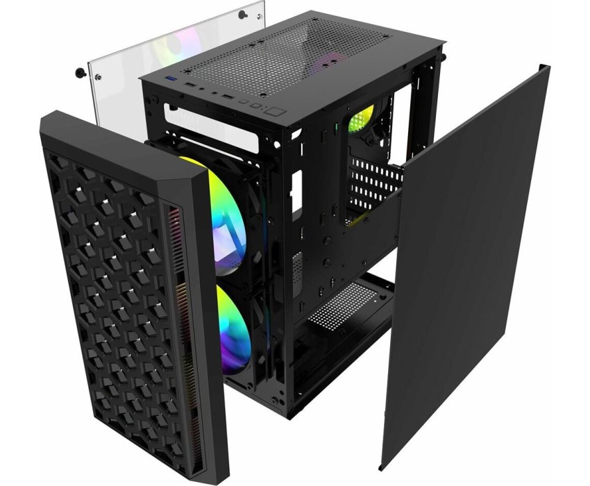 Powercase CMIMTB-L3 Корпус Mistral Micro T3B, Tempered Glass, Mesh, 2x 140mm + 1х 120mm 5-color fan, чёрный, mATX (CMIMTB-L3)