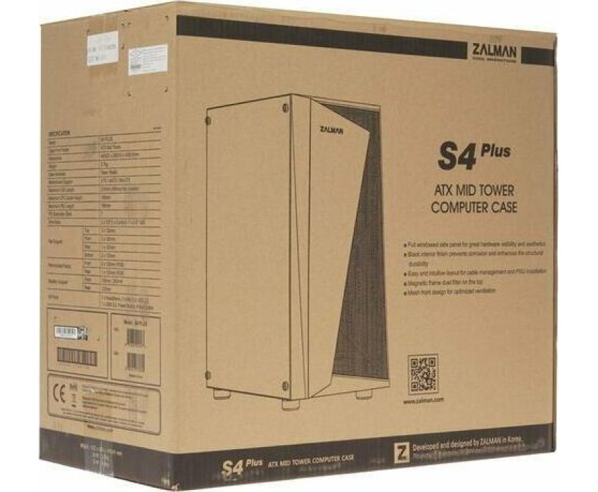 ZALMAN Корпус ATX S4 Plus, Midi-Tower, без БП, черный [s4 plus black]