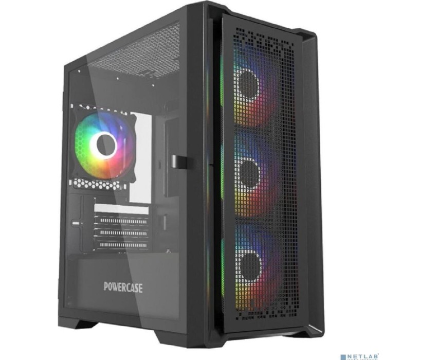 Powercase ByteFlow Micro Black, Tempered Glass, 4х 120mm ARGB fans, ARGB HUB, чёрный, mATX (CAMBFB-A4)